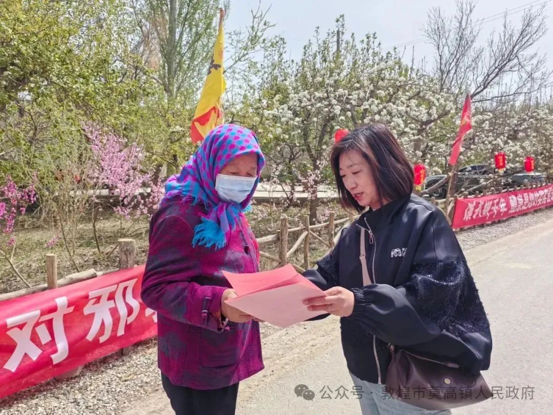 移风易俗树新风,文明风尚润人心。敦煌市莫高镇坚持把移风易俗作为殡葬改革的重要内容,通过打好“规矩牌”“宣传牌”“榜样牌”“志愿牌”四张牌,积极倡导树文明新风尚。各村将村规民约作为党组织联系群众的桥梁和纽带,利用“三会一课”、主题党日、村民大会等多种载体进行宣传,引导村民遵规守约。同时,通过评选身边好人、道德模范等先进典型,加强典型模范宣传工作。此外,还通过“花开敦煌 和美莫高”将移风易俗贯穿各类活动,通过发放宣传资料、现场讲解等方式,向群众宣传殡葬改革的重要意义,倡导绿色环保的祭祀方式,让和谐文明的新风尚“飞入寻常百姓家”。